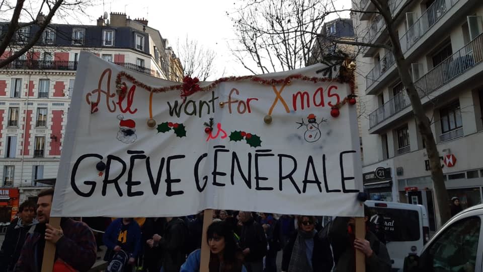 A questo proposito esiste un sentimento comune che lega il Natale 2018 nei ronds-points a quello del 2019 nelle stazioni e nei picchetti: la rinascita del sentimento di fraternità che fa dell’orizzontalità una forma di organizzazione, di autonomia e di strategia offensiva. È tale fraternità che determina un doppio movimento di rottura e di riappropriazione della festività, interrompendo la riproduzione del Natale come consumismo e ordine statal-familiare, reinventando una temporalità di lotta festiva e insurrezionale. Se in alcuni momenti noi abbiamo continuato a utilizzare l’espressione “base sindacale”, ci sembra più corretto parlare semplicemente di scioperanti.